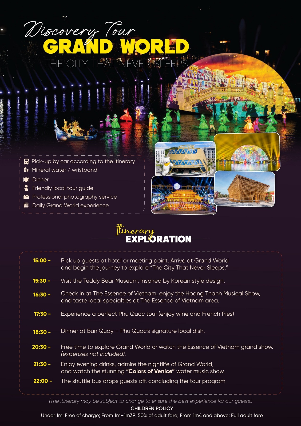 15h30 – 22h15: Arrive at Grand World and begin the journey to explore The Sleepless City:
