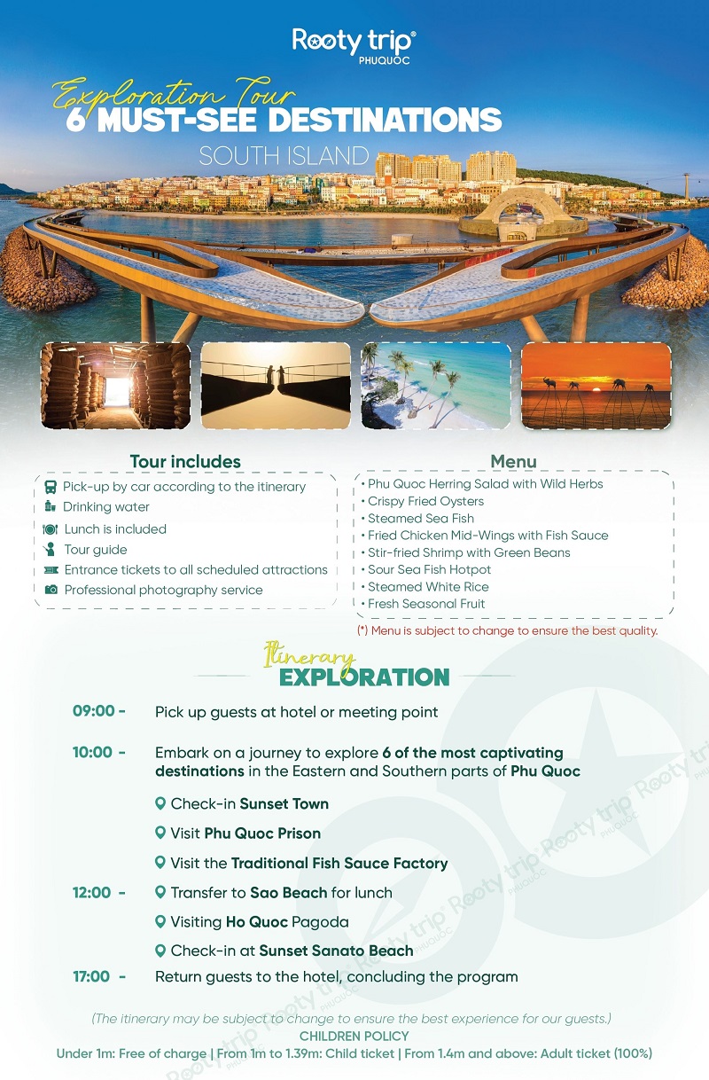 This 1-day Phu Quoc tour itinerary is for reference only and may be adjusted depending on weather conditions to ensure the best experience for guests.