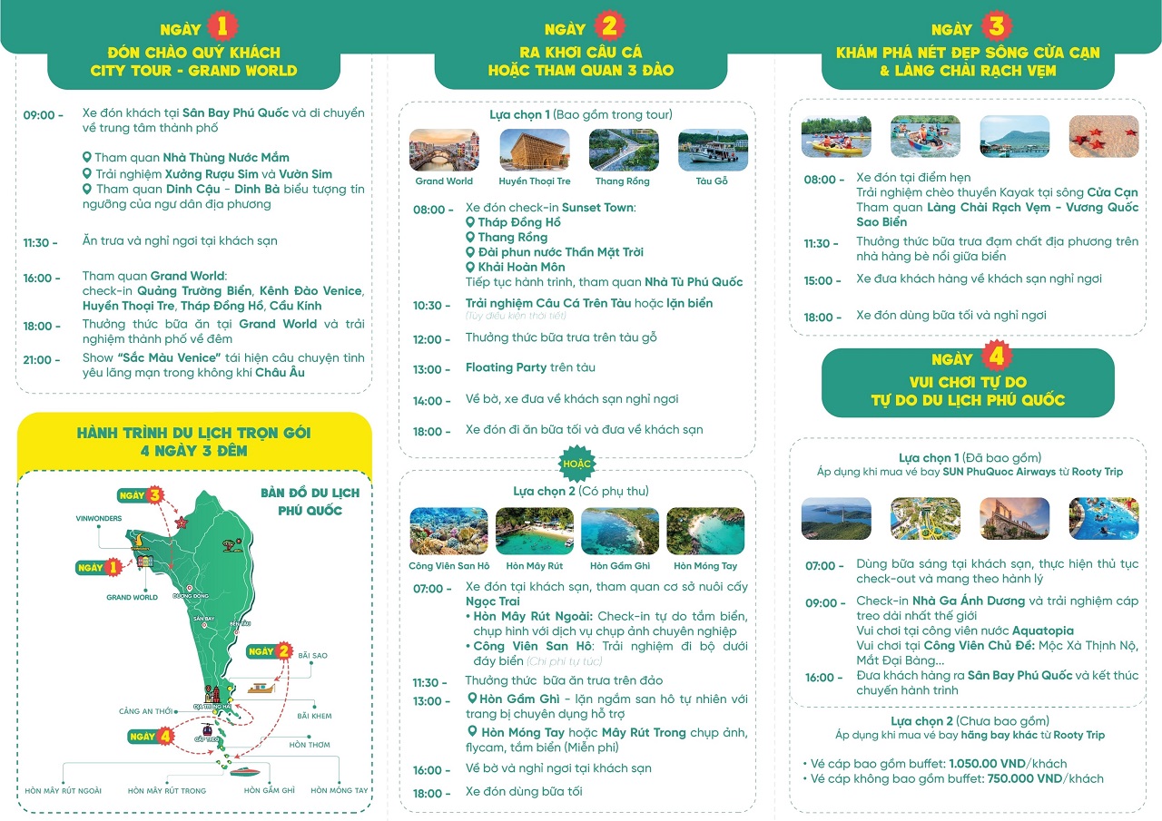 Lưu ý: Lịch trình đảo có thể linh động theo thời tiết nhưng vẫn đảm bảo đủ 3 điểm đẹp nhất.