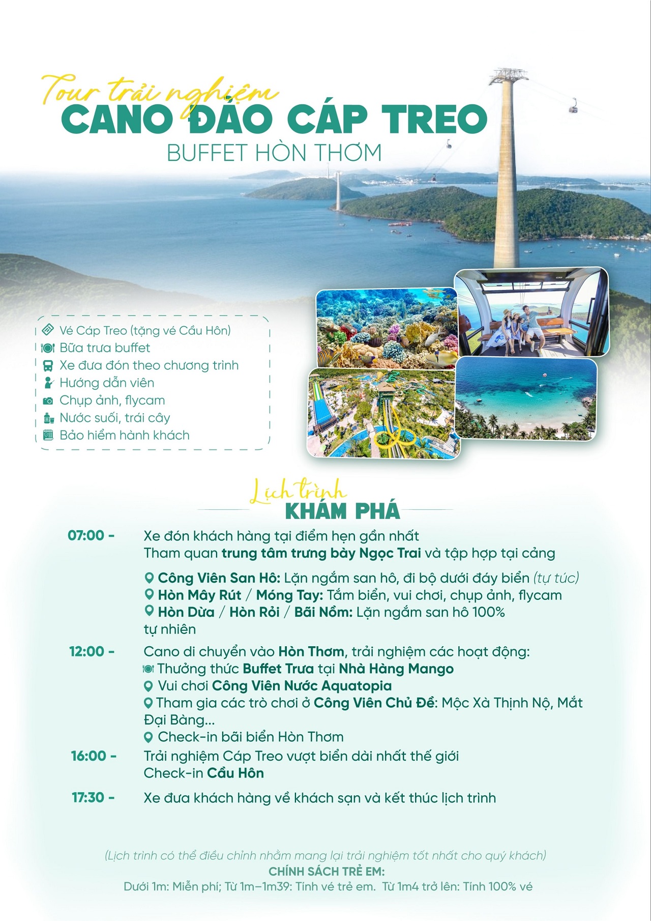 - Chính sách trẻ em: Bé cao dưới 1m: Miễn phí